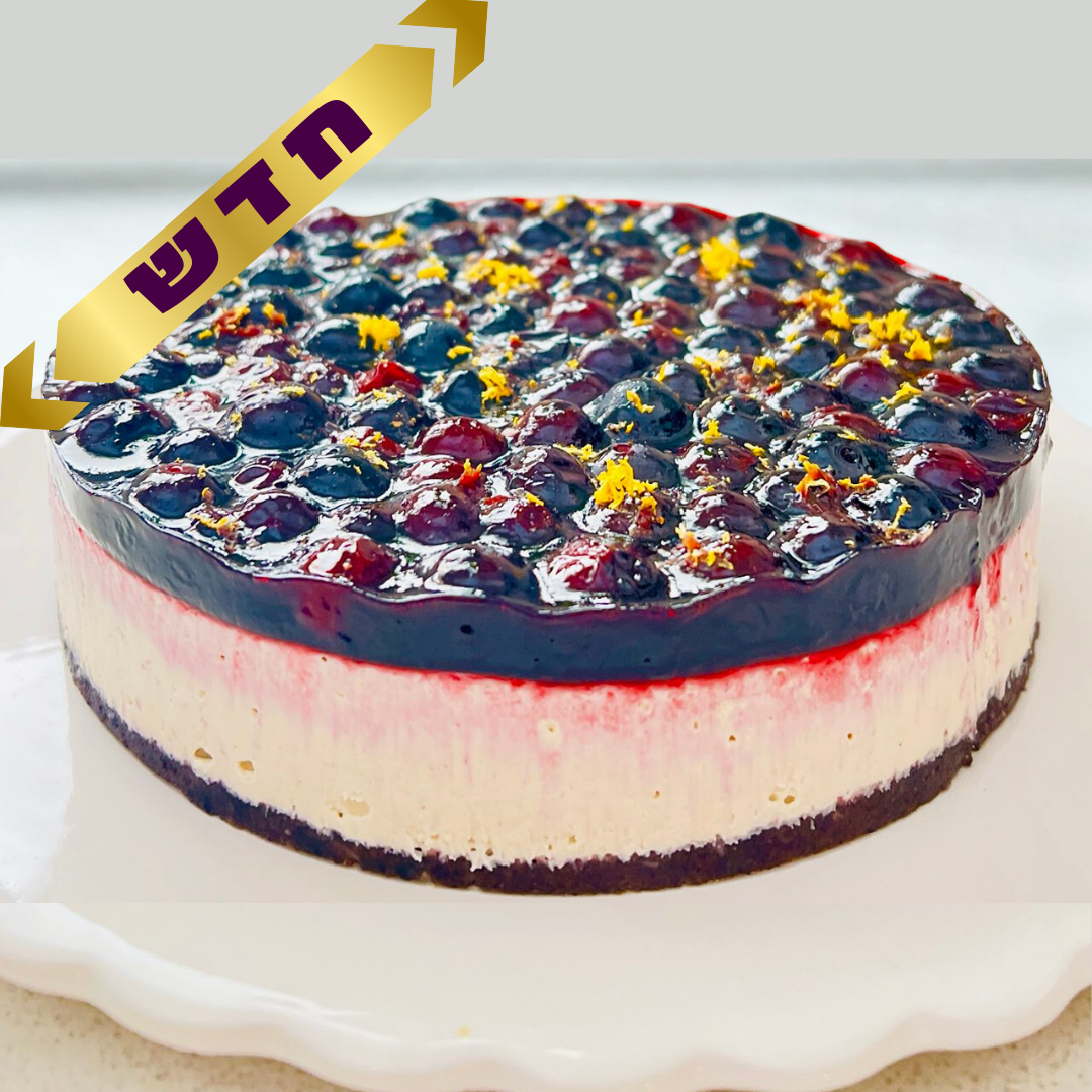 קרם גבינת קשיו עשיר וקטיפתי וקונפיטורת אוכמניות כחולות טריות ומבושלות.