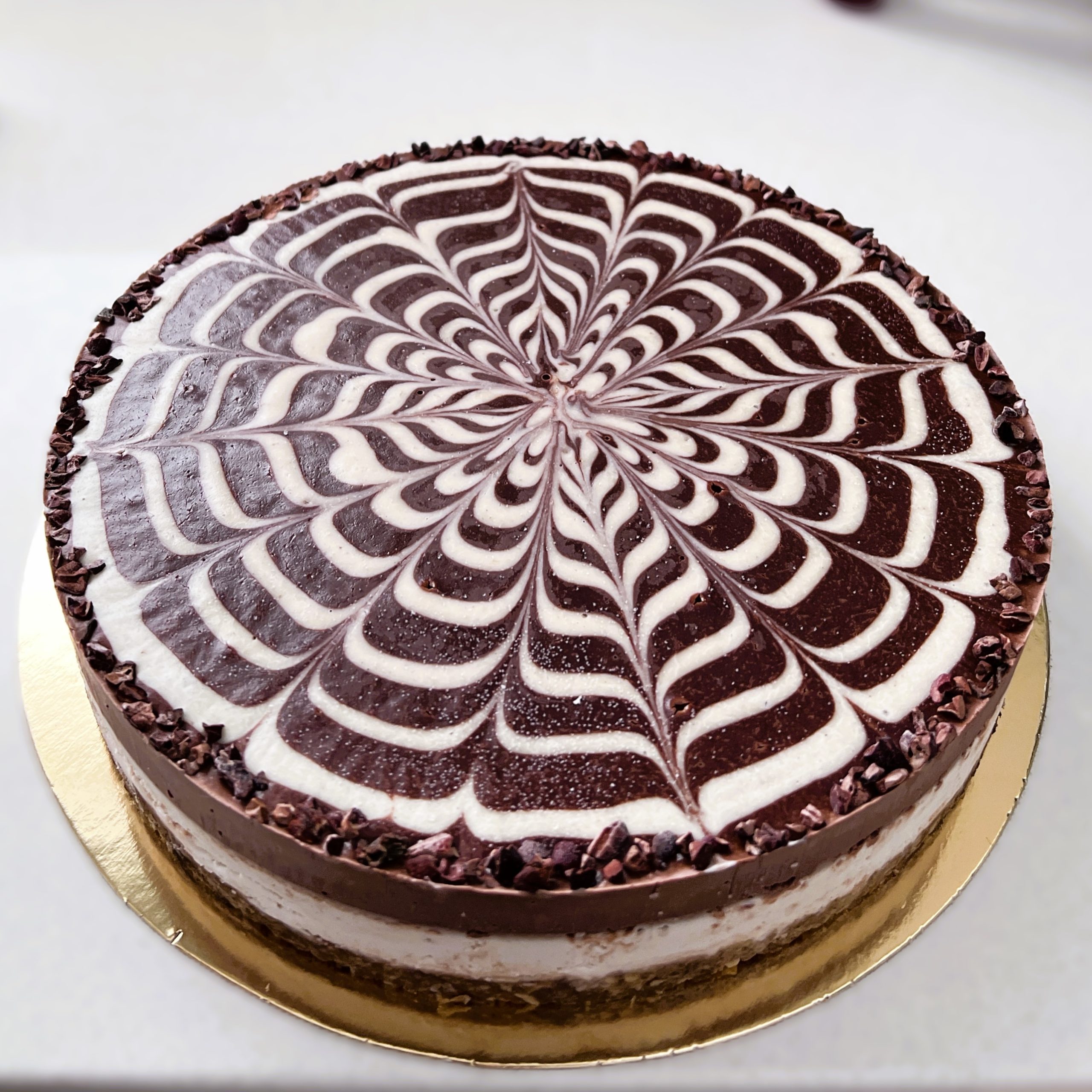 עוגה זו הכי קולעת לטעם הארצישראלי-ים-תיכוני קראסט תמרים ושקדים, קרם וניל שמנתי וקרם שוקולד עשיר